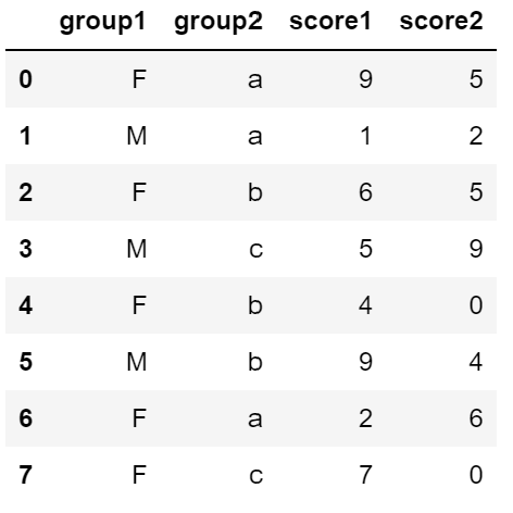 'group2': ['a', 'a', 'b', 'c', 'b', 'b', 'a', 'c'],