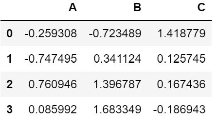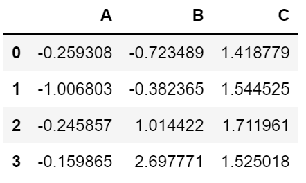 df3 = pd.DataFrame(np.random.randn(4, 3), columns = ["A", "B", "C"])